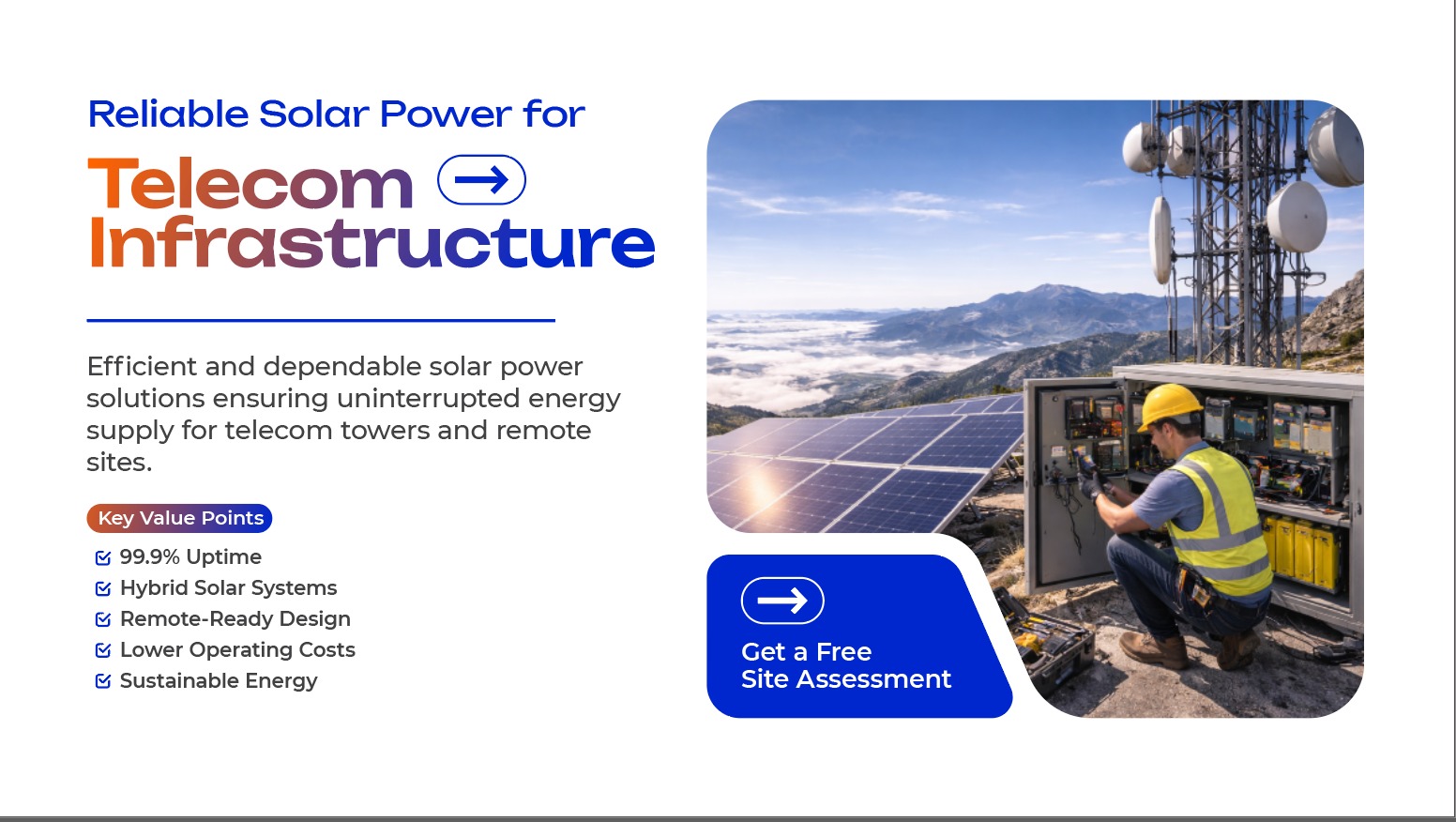 Our Services includes Telco Power, Solar Energy, Civil Work, Drilling Services, Operation and Maintenance